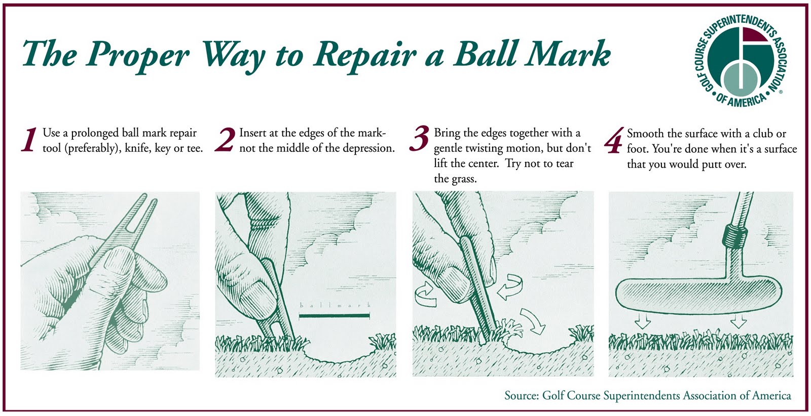 As someone who loves the game of golf, and plays more than his fair share, I try to to as much as I can to leave the course better than when I found it. I love to get out there and play fast and tricky greens, but most public courses cannot keep the greens as fast and furious as we would like them because of the amount of play they receive. Unfortunately it is not the players playing that causes so much damage it is the fact that most golfers do not take the time to find their ball mark or pitch mark and fix it. Think back to the last time you played, did you fix a ball mark on every green? Did you fix two? It only takes a second, and it makes a huge difference in the greens. It never fails to bother me when I have a drink inside the clubhouse after a round on shaky greens, and the very players who don’t fix their ball marks are complaining about the condition of the greens.
