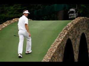 AUGUSTA, GA – APRIL 05: Bubba Watson crosses the Hogan Bridge during the first round of the 2012 Masters Tournament at Augusta National Golf Club on April 5, 2012 in Augusta, Georgia. (Photo by Streeter Lecka/Getty Images)