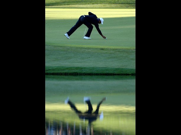AUGUSTA, GA – APRIL 06: Tiger Woods of the United States marks his ball on the 16th green during the second round of the 2012 Masters Tournament at Augusta National Golf Club on April 6, 2012 in Augusta, Georgia. (Photo by Andrew Redington/Getty Images)