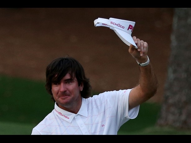 AUGUSTA, GA – APRIL 08: Bubba Watson of the United States reacts after winning his sudden death playoff on the second playoff hole to win the 2012 Masters Tournament by one stroke at Augusta National Golf Club on April 8, 2012 in Augusta, Georgia. (Photo by Andrew Redington/Getty Images)